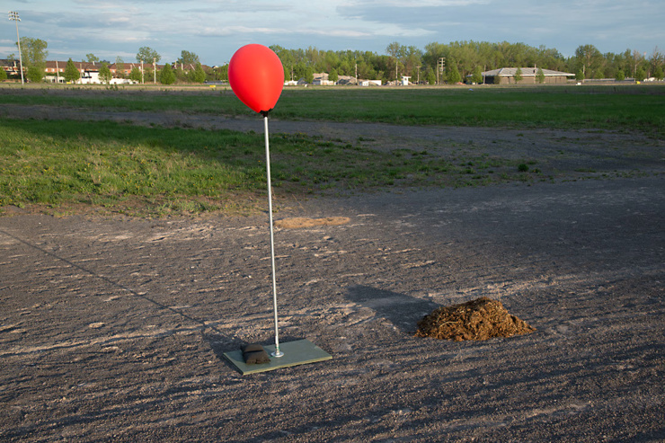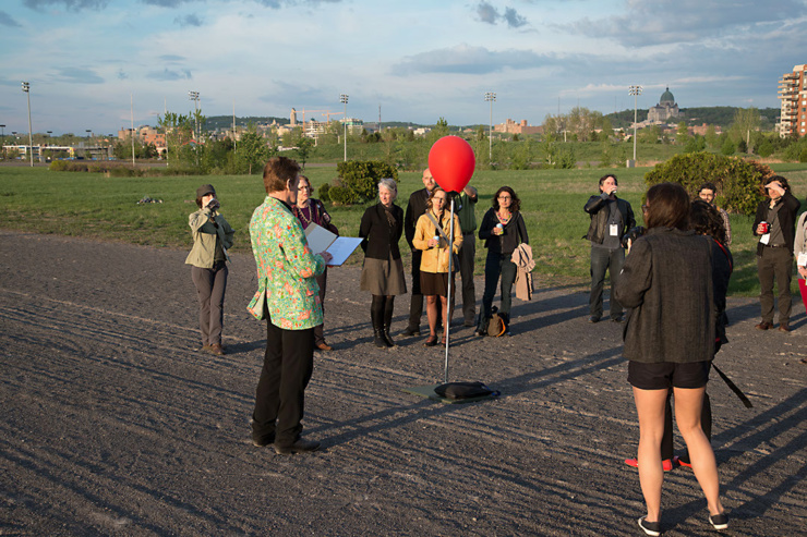 The Montréal Hippodrome is the former site of the Blue Bonnets Raceway. Closed in 2009, Blue Bonnets was a betting arena for thoroughbred and harness racing for over 100 years. Blue Bonnets was named after the 77th Highland Regiment, whose soldiers fought in the 1760 Battle of Montréal and were known for their distinctive hats. Since 2009, the site has been used for rock concerts (including U2 in 2011), dog walking, and off-site storage for several city hospitals. A 43.5-hectare tract of currently “vacant” land, the Hippodrome is going to become a sustainable housing development, with 5000-8000 residential units planned, in a few years. Our project used geo-located audio and visual narratives sited along the racetrack, along with oversized “map pins” and other analog components such as poetry readings, bicycle races, balloons and horse manure in an exploration of the past, current and potential future uses of the site. In the end, the space itself completed the project. This urban ruin, an in-between space, or a liminal space, was supercharged with history, narrative, sound, and image.