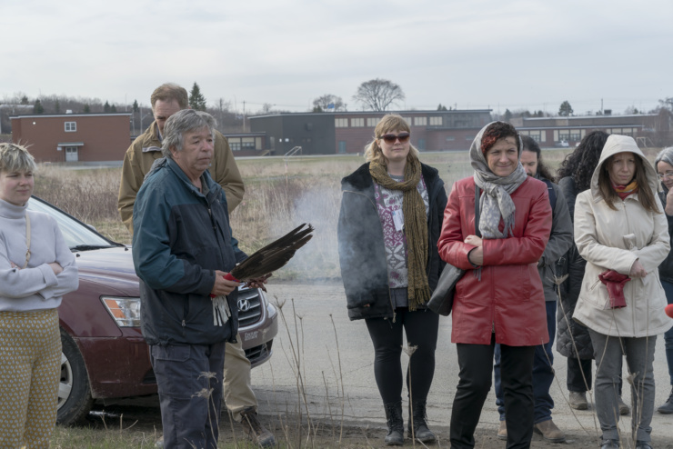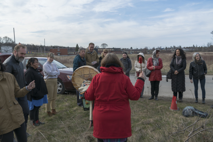 The Thinking through the Museum team is comprised of scholars from multiple universities, including project director Dr. Angela Failler (University of Winnipeg), Dr. Heather Igloliorte (Concordia University), and others. The researchers consider ways in which traumatic events and histories, such as residential schools, the Holocaust, and the Halifax Explosion can be addressed in museums and other public settings. NiS+TS was very fortunate to have elders Joe Michael and Catherine Martin along for this event. At Turtle Grove, Martin and Michael invited participants to form a talking circle to share knowledge of the Halifax Explosion and its devastating impact upon the Mi’kmaq community of Turtle Grove.